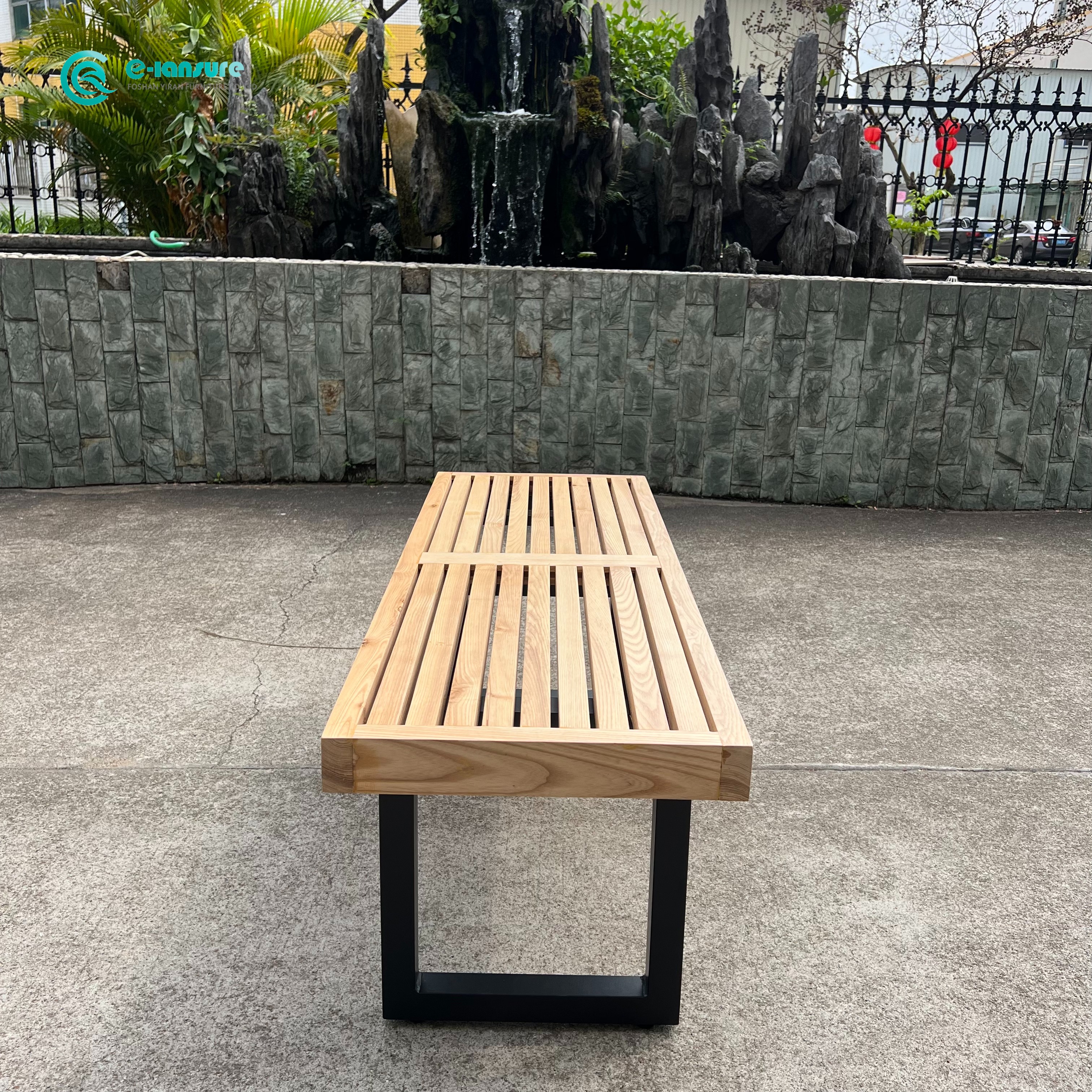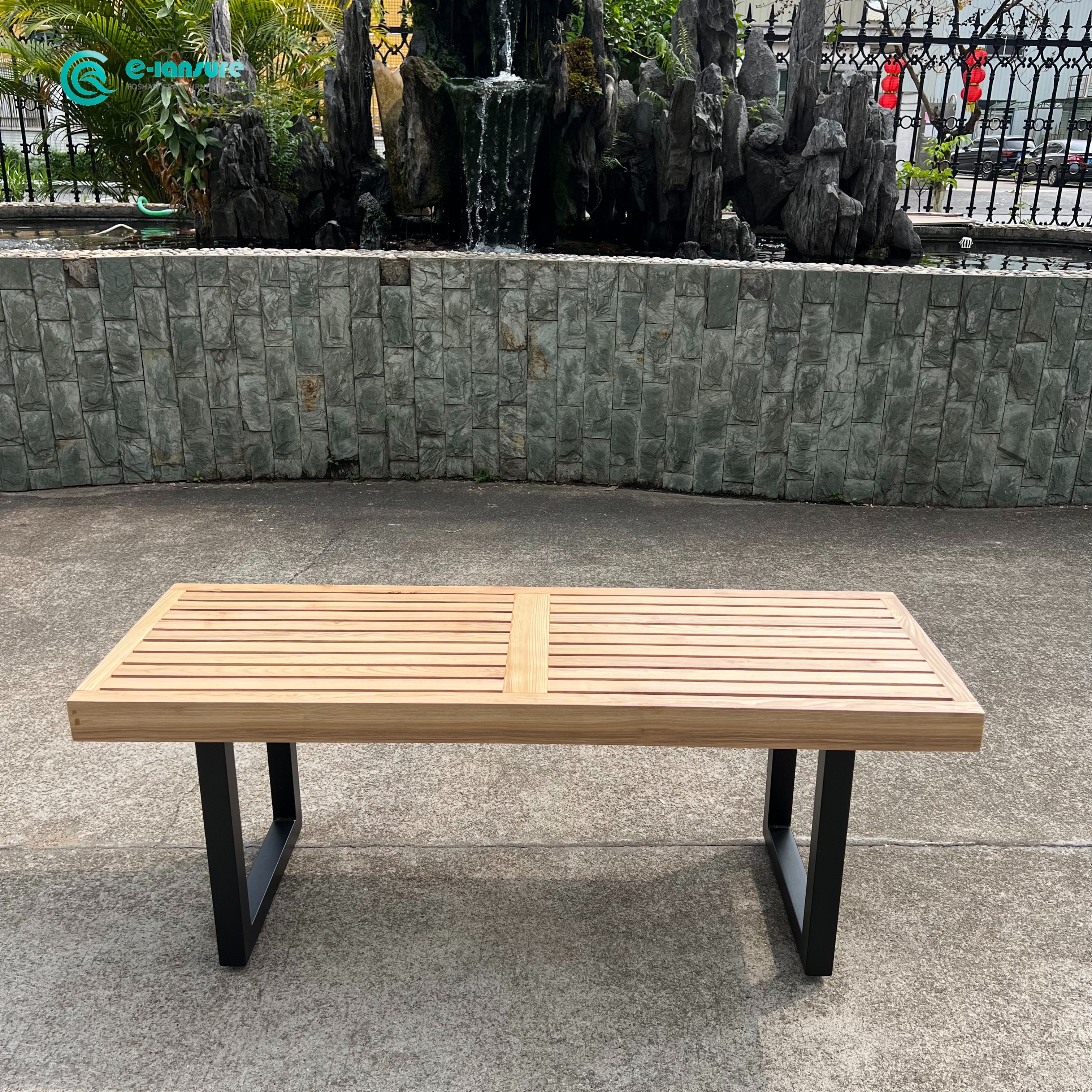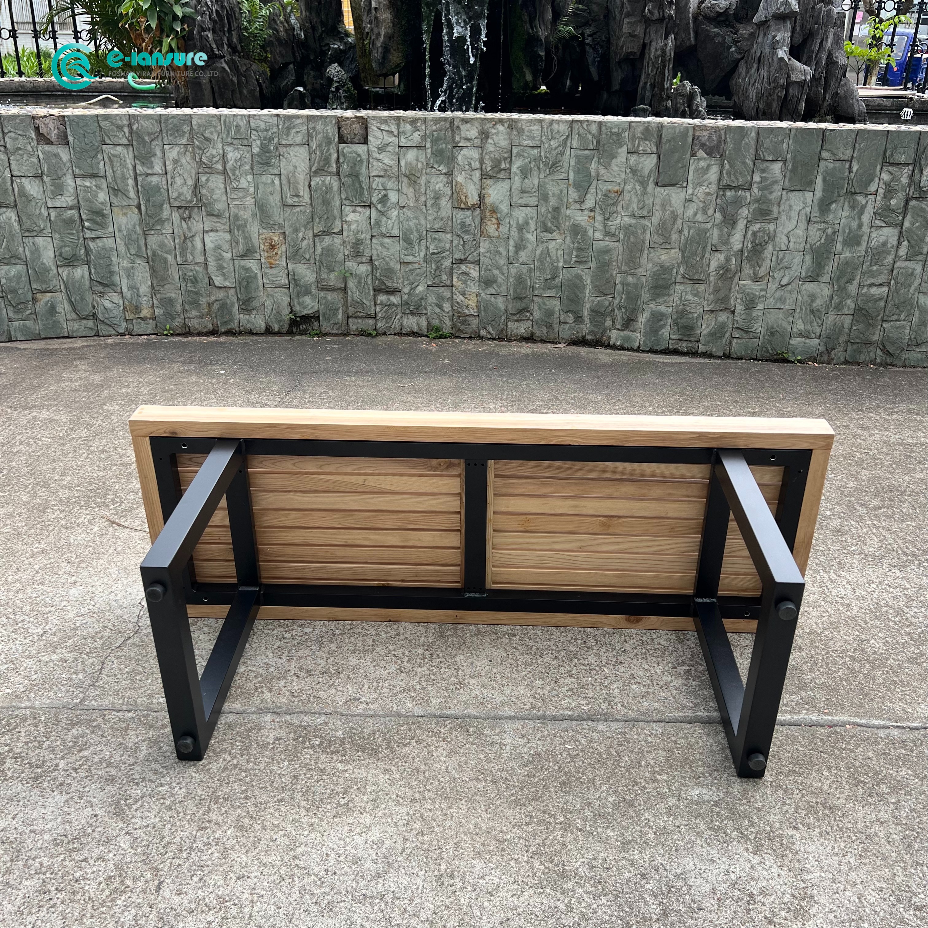 Courtyard gardens, hotel patios, public parks, and restaurant terraces all fit this bench. Private homes place it along garden paths for rest during walks. Hotels set pairs near fountain edges for guest conversation. Parks line walkways with rows for tired visitors. Restaurants put them out front for waiting guests or back patios for post-meal lingering. The mixed materials suit both natural plantings and built hardscapes. The shared seating encourages social use over solo sits. The sturdy build handles heavy public traffic without loosening.