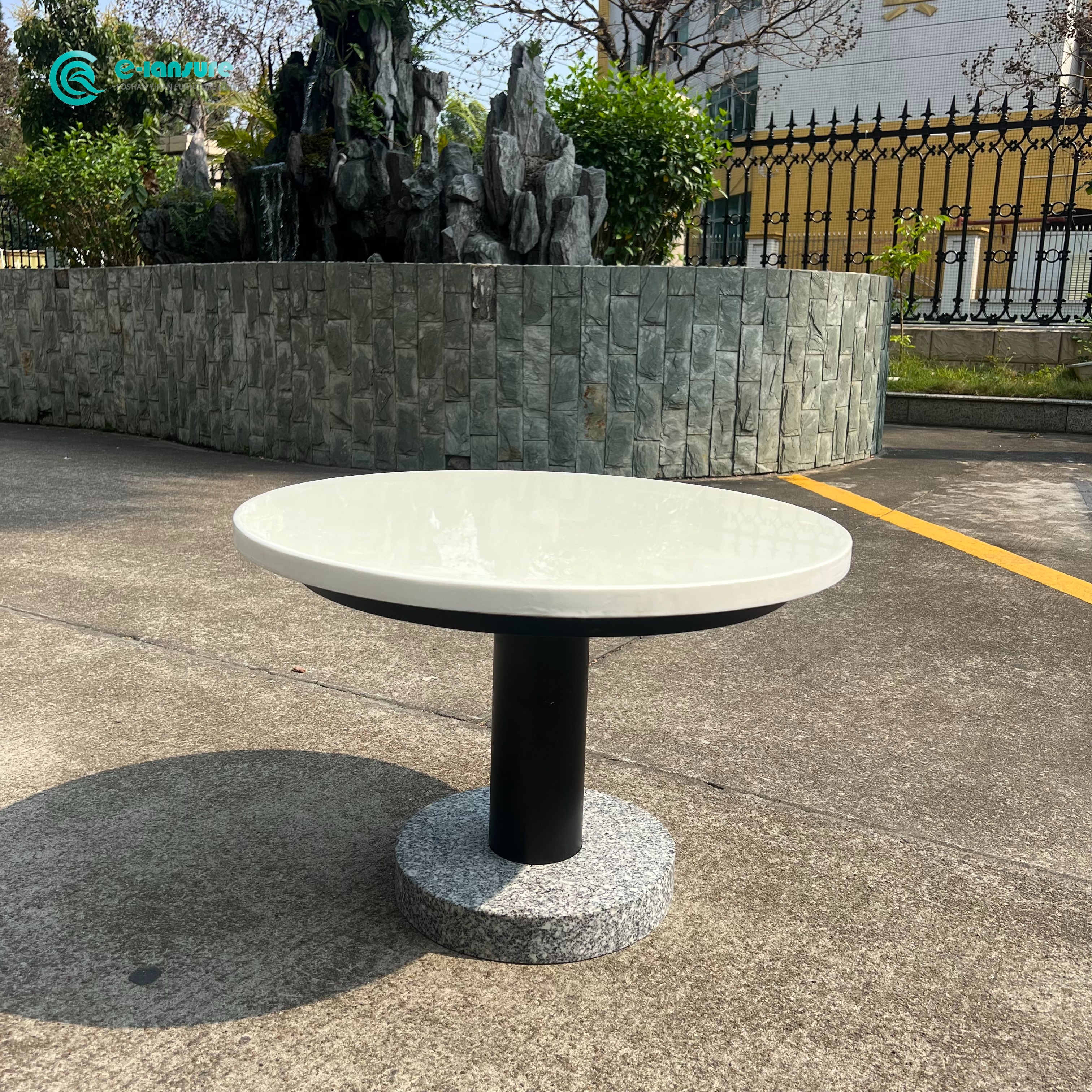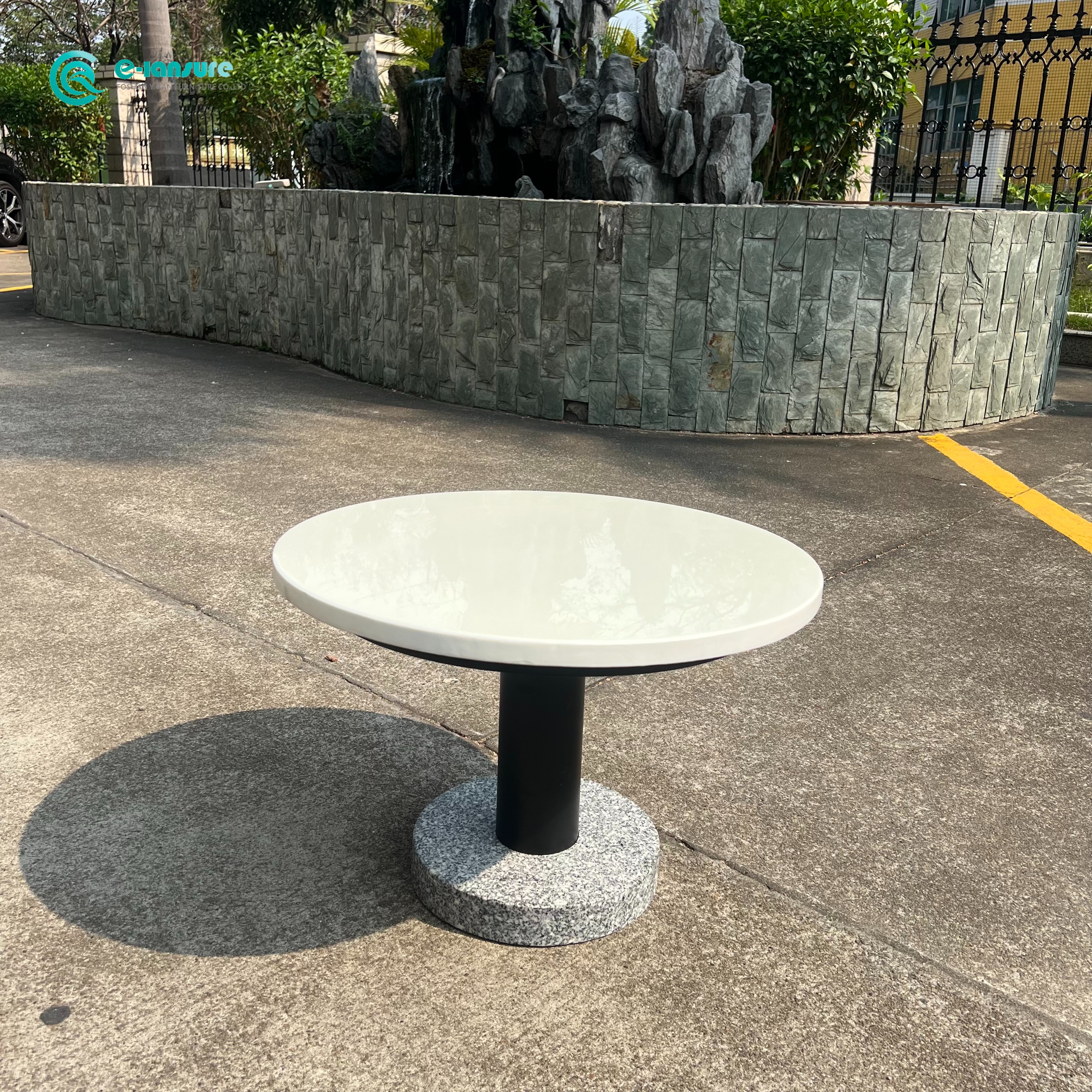 Hotel pool decks, resort lounges, villa courtyards, and restaurant terraces all fit this heavy table. Hotels place it between low sofa sections for guest drink service. Resorts set it in cabana interiors for private lounging. Villas use it as a central anchor for outdoor seating groups. Restaurants arrange it on patios for casual dining that withstands wind and busy traffic. The modern mix of natural and engineered stone suits contemporary builds and updated classic spaces. The weight keeps the table steady without constant adjustment. The hard surface handles daily commercial use without showing wear.
