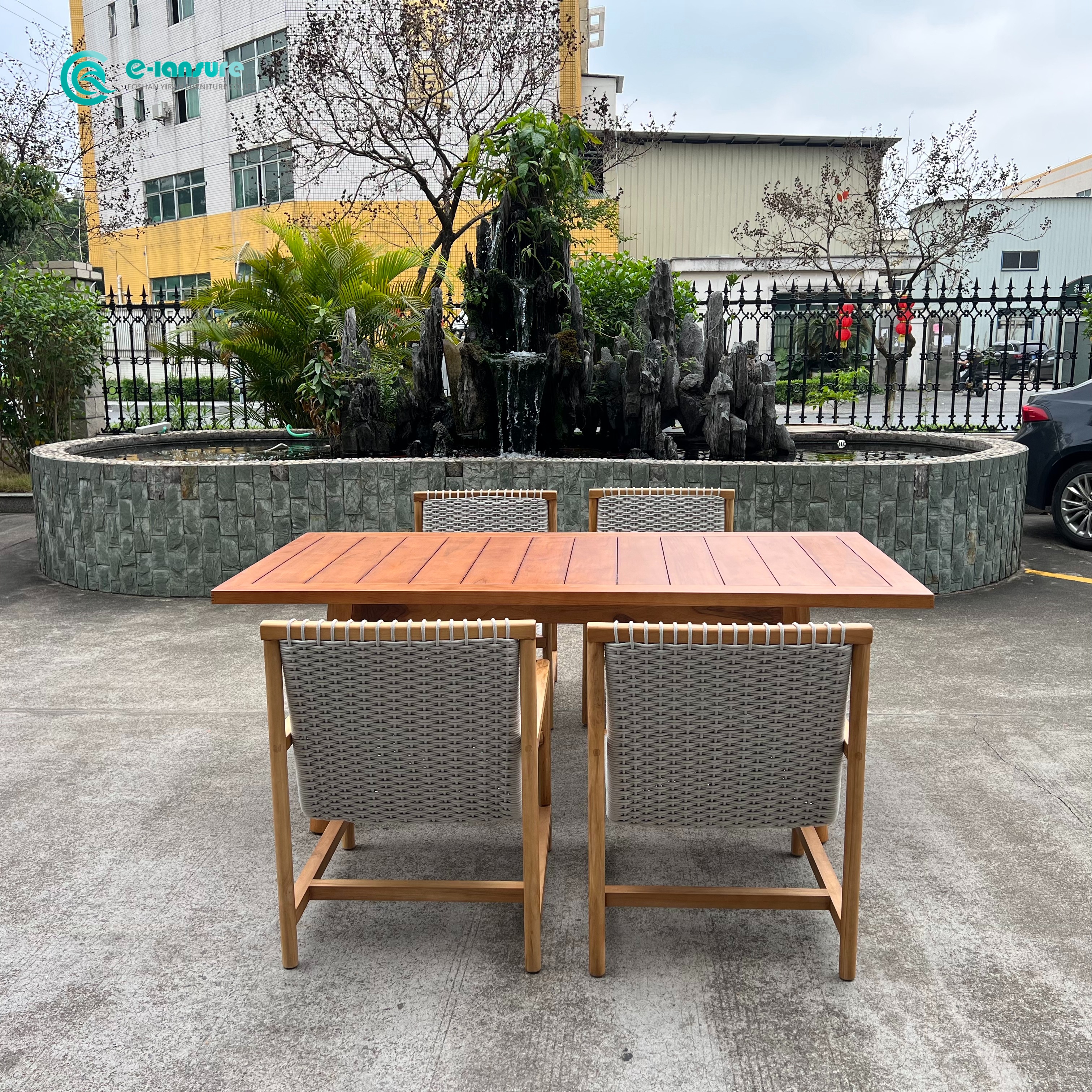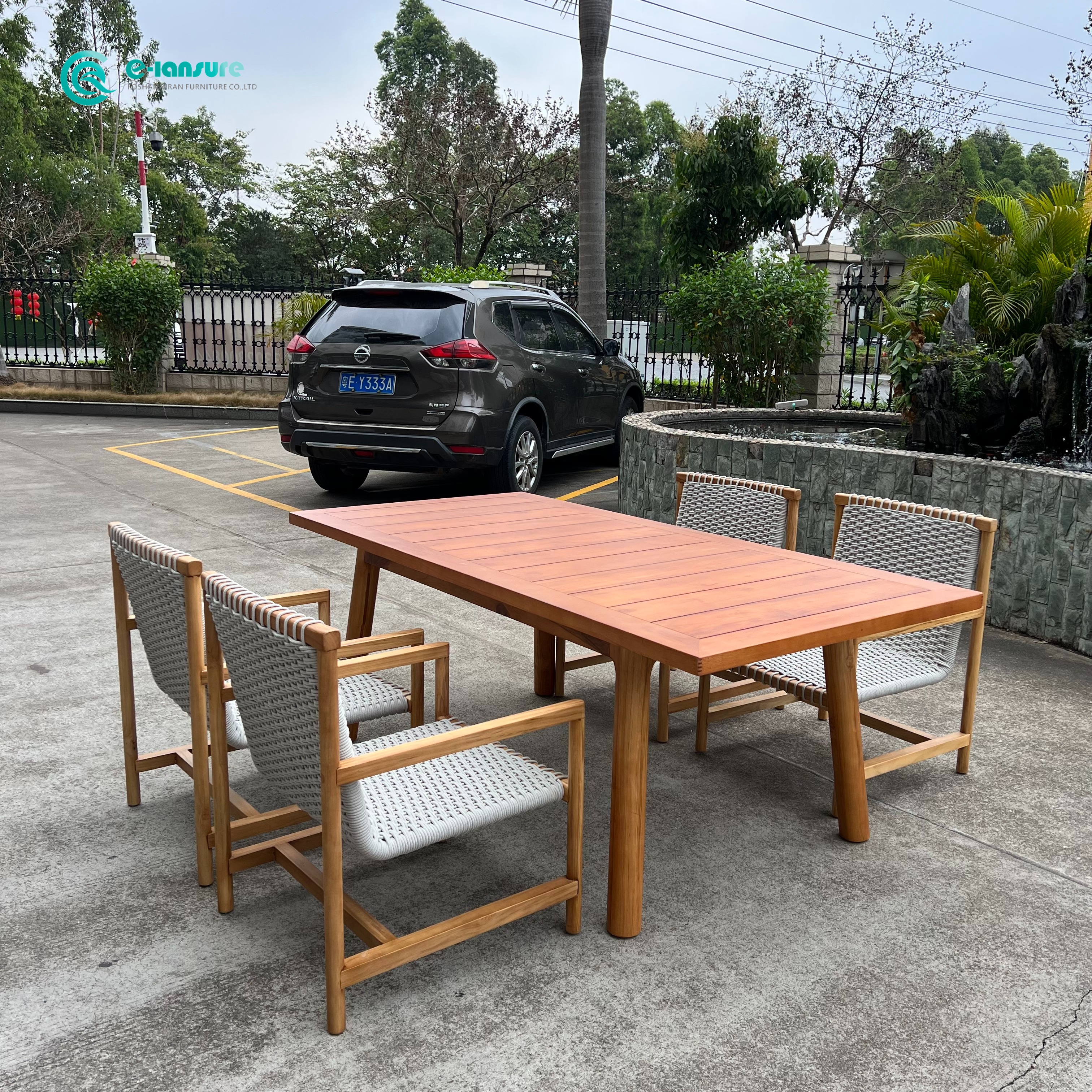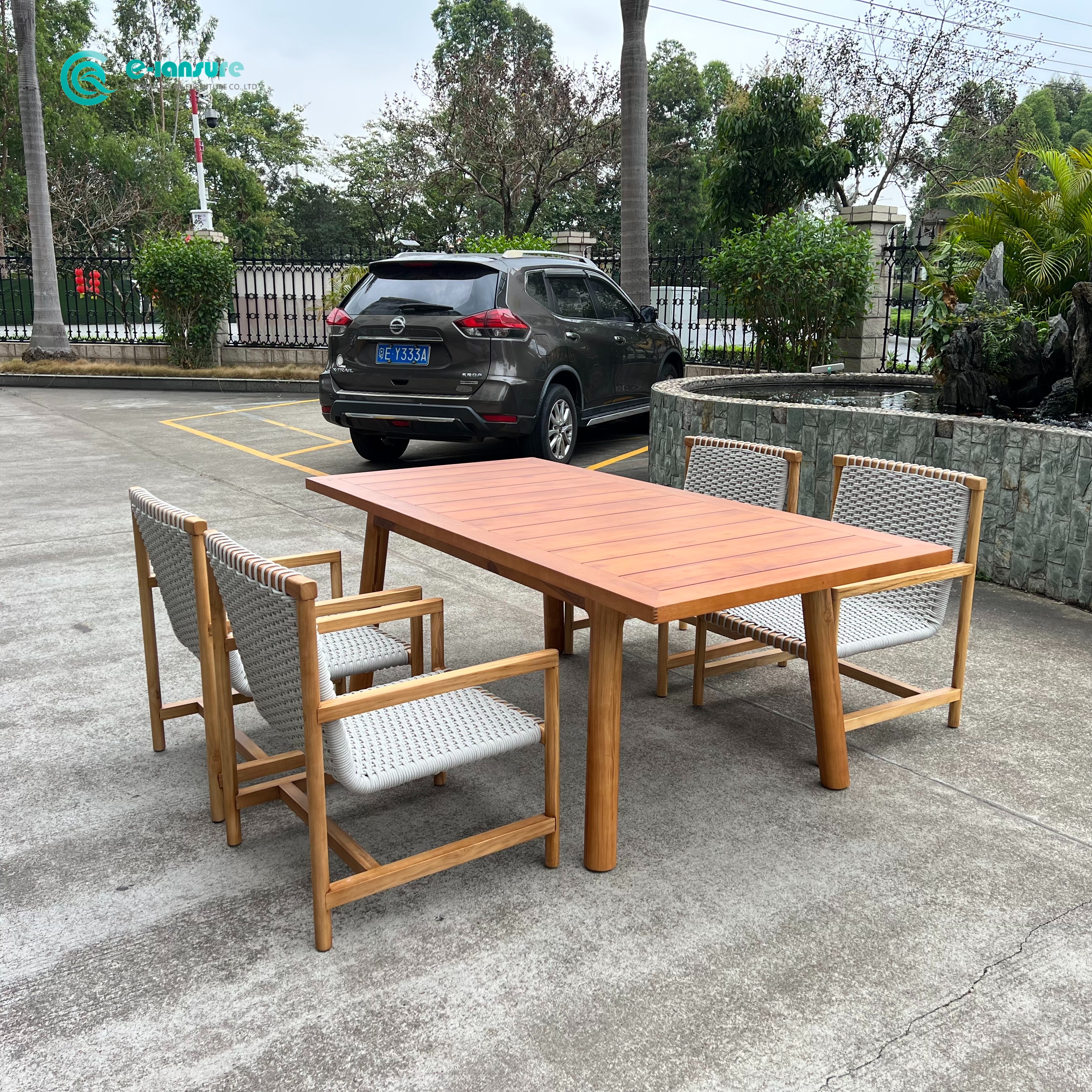 Product Name | Retro Style Outdoor Dining Set Teak Wood Woven Rope Dining Chair With Rectangle Table |