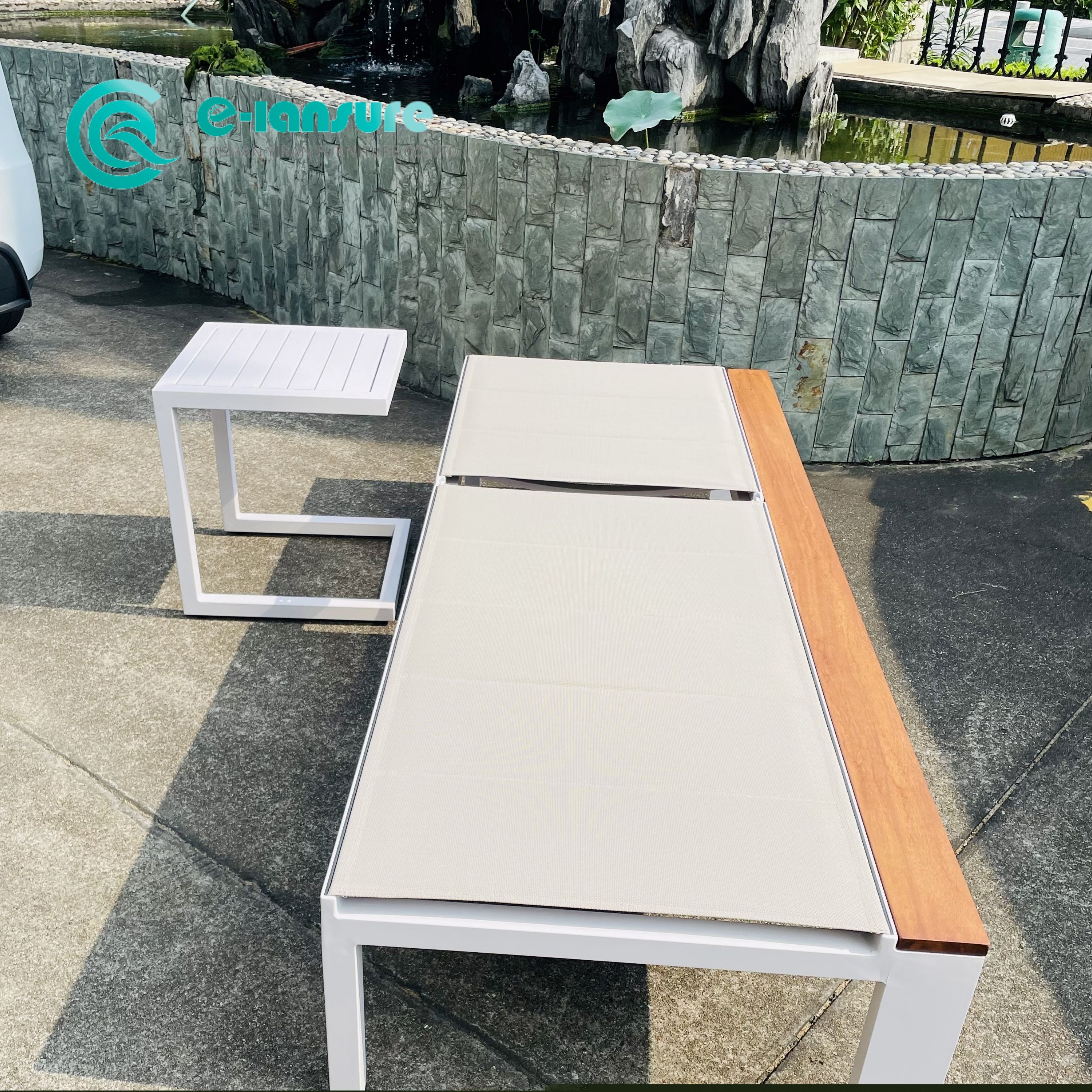 | Product Name | Simple Style Outdoor Garden Furniture Aluminum Sunbed with Textilene Fabric Poolside Teakwood Sun Lounger For Garden Courtyard |