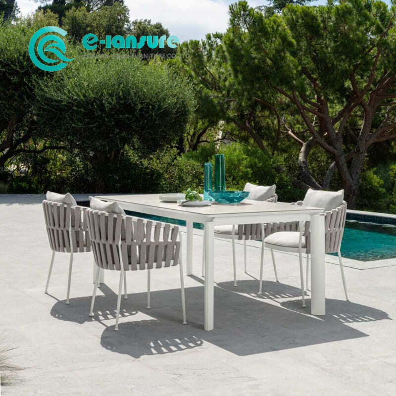 Wholesale High Quality Aluminum Frame Dining Chair: Woven Rope with Waterproof CushionCrafting Outdoor Dining Excellence Elevate your outdoor dining experience with our Wholesale High Quality Aluminum Frame Dining Chair. Thoughtfully designed for villas and courtyards, this dining chair combines durable aluminum construction with woven rope detailing and a waterproof cushion. Perfect for those who value both aesthetics and practicality in their outdoor spaces. A Symphony of Style and Function The chair’s aluminum frame embodies robustness and lightness in one package. Its woven rope design adds a touch of rustic charm without compromising the modern look. The waterproof cushion ensures year-round comfort, effortlessly adapting to seasonal changes. This isn’t just an outdoor chair—it’s a fusion of form and function. Engineered for Durability and Comfort Built to withstand the elements, this aluminum chair resists rust and corrosion, ensuring long-term reliability. The cushion’s water-resistant properties guarantee that it remains comfortable and pristine, regardless of weather conditions. Its ergonomic design supports the body, enhancing user comfort during extended use. Seamless Integration with Diverse Settings Whether you’re designing a cozy courtyard dining nook or enhancing a villa’s poolside ambiance, this dining chair effortlessly complements various environments. Its neutral tones and versatile design allow it to harmonize with different decor styles, from modern minimalism to classic charm. Low Maintenance, High Impact Enjoy the benefits of low-maintenance luxury. The aluminum frame and woven rope require minimal upkeep, while the cushion can be easily cleaned to retain its like-new appearance. This ensures you spend less time on maintenance and more on enjoying your outdoor space. Unlock Outdoor Dining’s Full Potential In today’s world, outdoor dining spaces are cherished extensions of the home. This high-quality aluminum dining chair helps transform your courtyard into a beloved gathering spot, enhancing the functionality and aesthetic appeal of your outdoor area. Begin Your Outdoor Dining Revolution Ready to redefine how you entertain and dine outdoors? Reach out to us to discover how our Wholesale High Quality Aluminum Frame Dining Chair can help you create memorable dining experiences in your villa or courtyard. The Future of Outdoor Dining This dining chair isn’t just a product—it’s a symbol of the perfect harmony between durability and design. It’s about creating an outdoor space where every meal is enjoyed as much as the setting itself. |