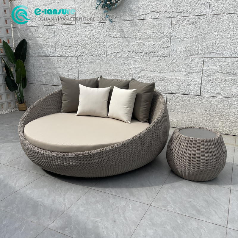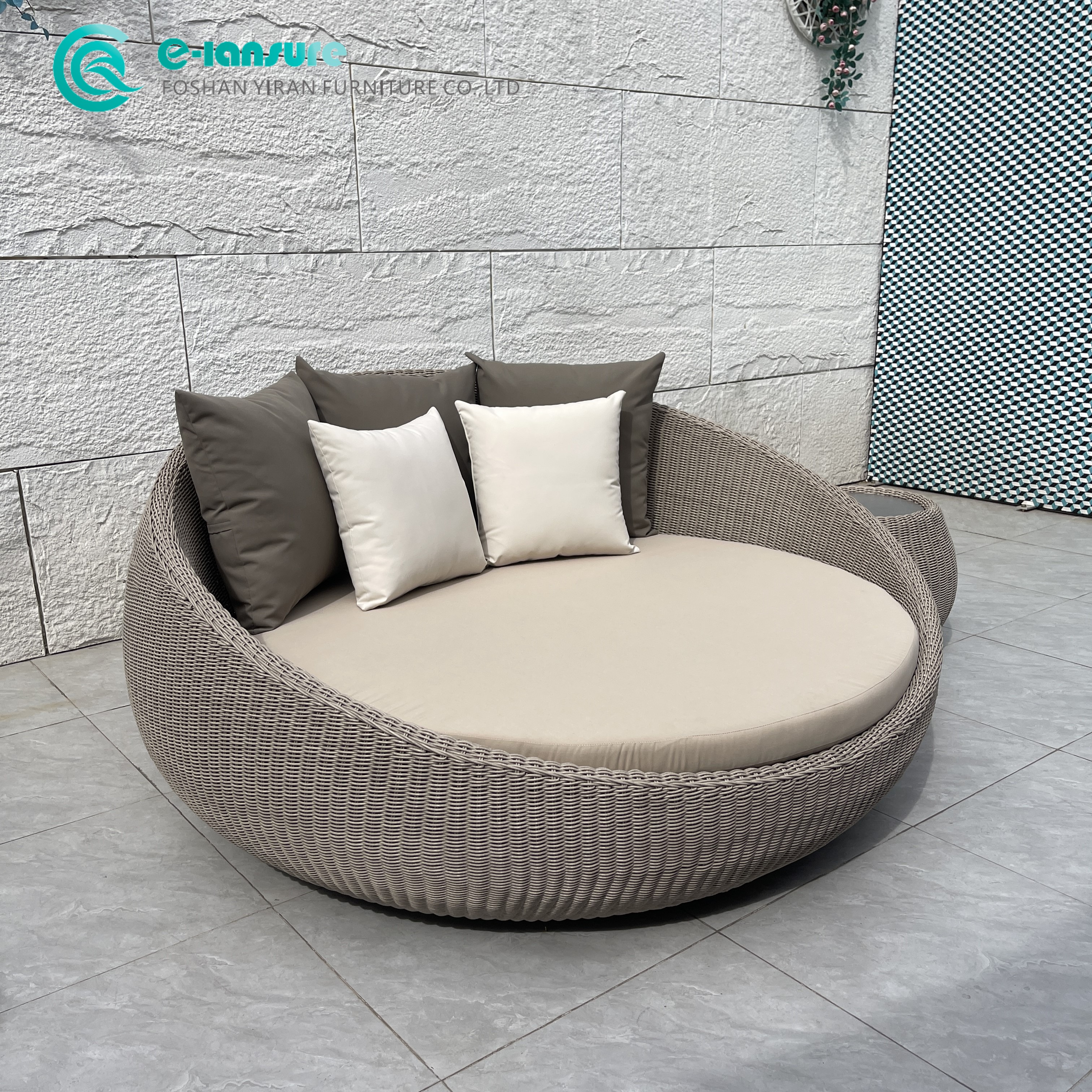 Адкрыйце для сябе ідэальнае спалучэнне мінімалісцкага дызайну і раскошнага камфорту з нашым мінімалістычным адкрытым ляжаком. Гэтая якасная садовая мэбля з алюмініевым каркасам створана для пераўтварэння вашага басейна ў ціхамірнае месца адпачынку. Кушэтка каля басейна круглай формы з ПЭ ротанга прызначана для гатэляў і курортаў, прапаноўваючы стыльнае і трывалае рашэнне для адпачынку на свежым паветры.