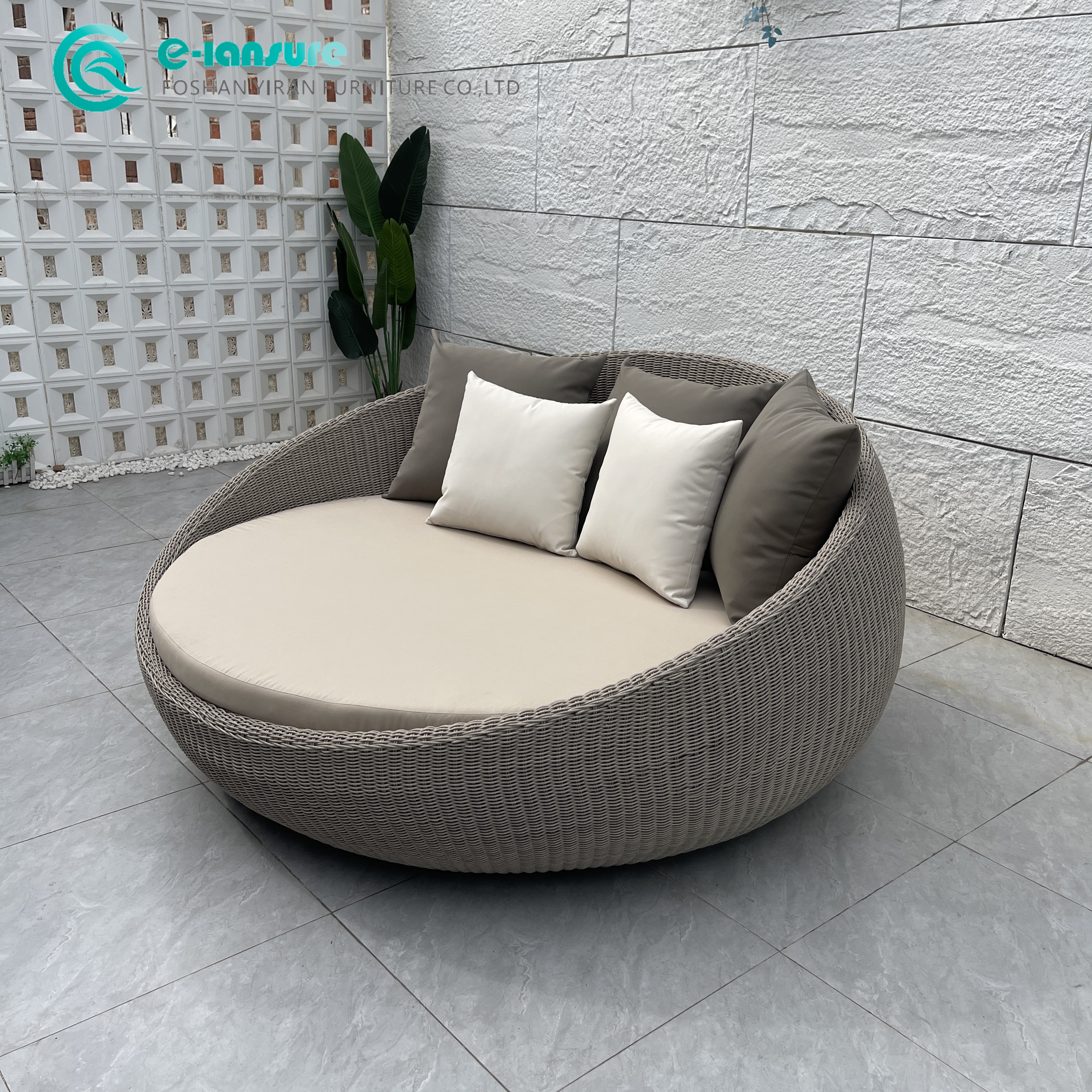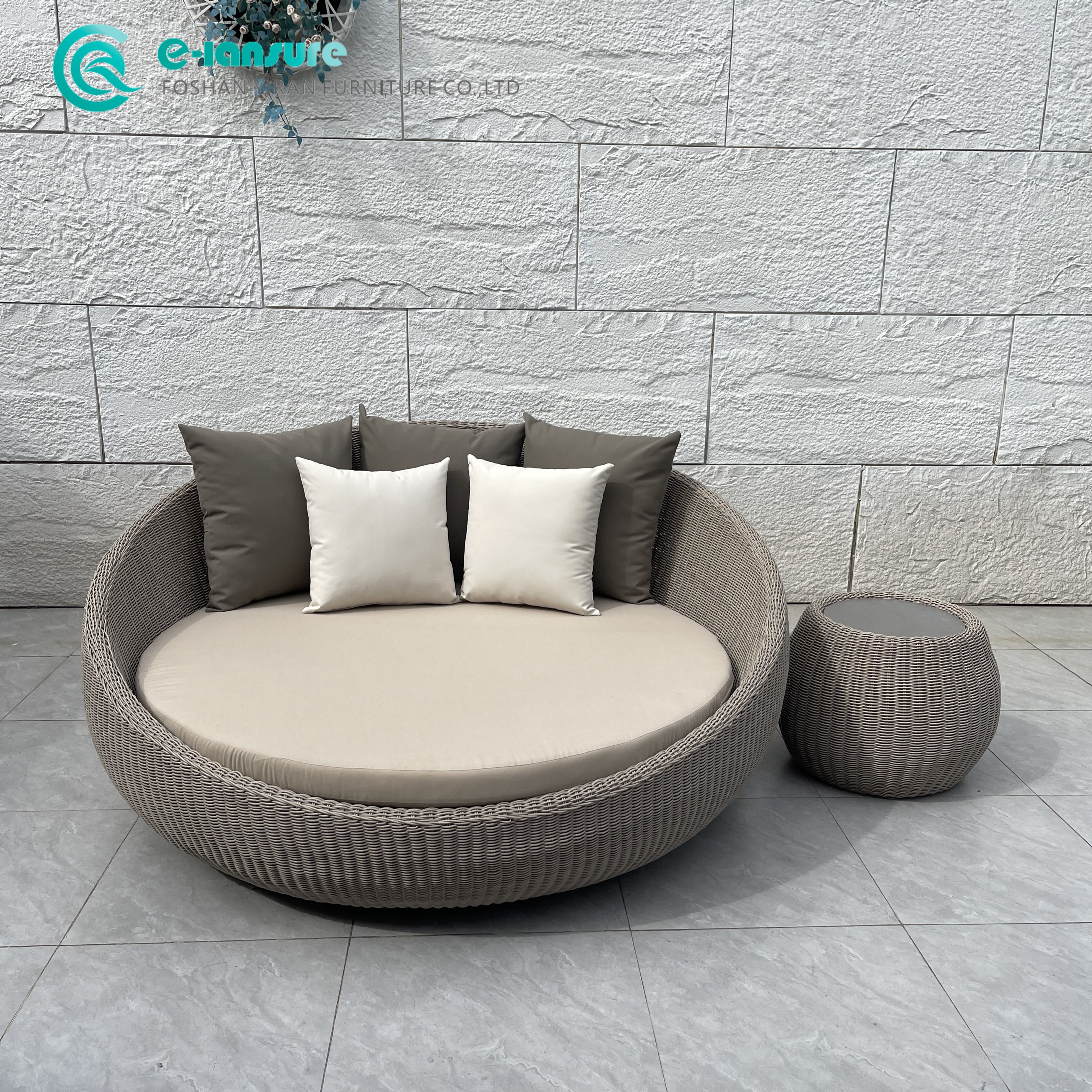 Адкрыйце для сябе ідэальнае спалучэнне мінімалісцкага дызайну і раскошнага камфорту з нашым мінімалістычным адкрытым ляжаком. Гэтая якасная садовая мэбля з алюмініевым каркасам створана для пераўтварэння вашага басейна ў ціхамірнае месца адпачынку. Кушэтка каля басейна круглай формы з PE Rattan прызначана для гасцініц і курортаў, прапаноўваючы стыльнае і трывалае рашэнне для адпачынку на свежым паветры.
