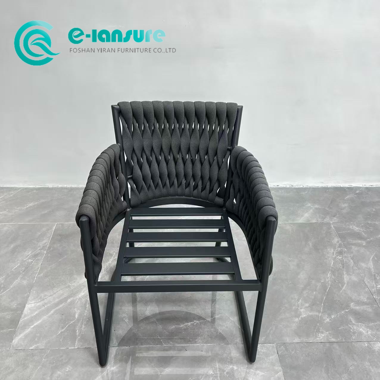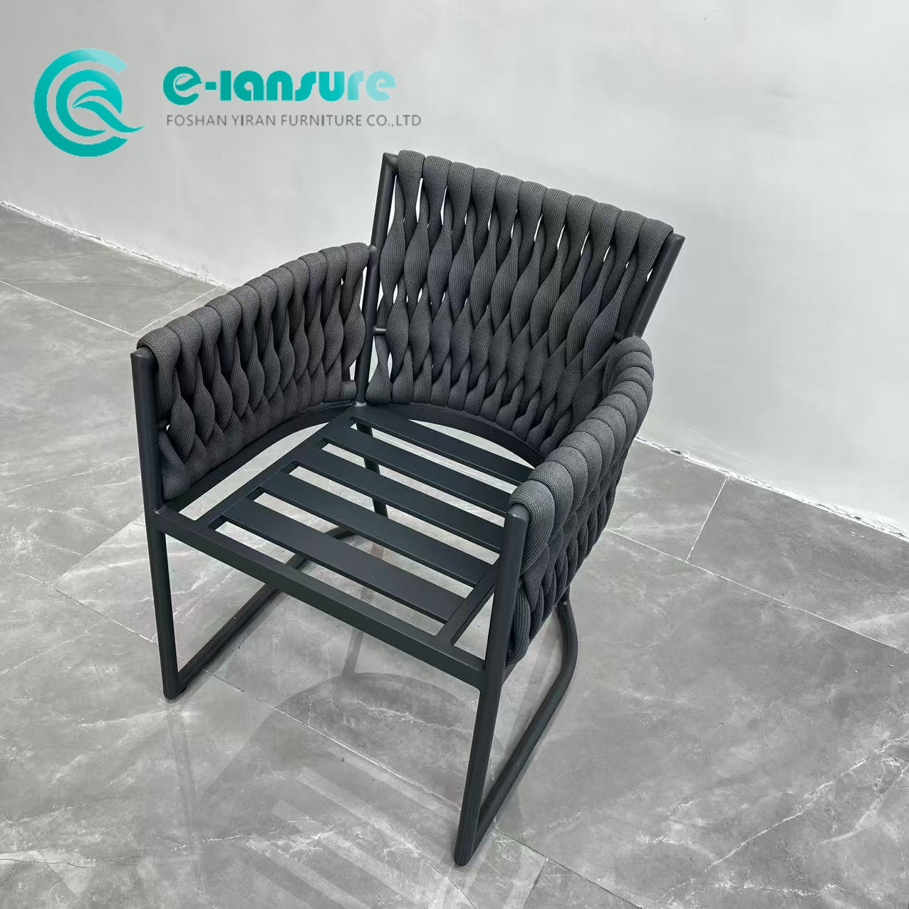 | Назва прадукту | Мэбля для сталовай на адкрытым паветры ў простым стылі, алюмініевая рама з чорным вяровачным плеценым абедзенным крэслам для садовага двара гатэля |