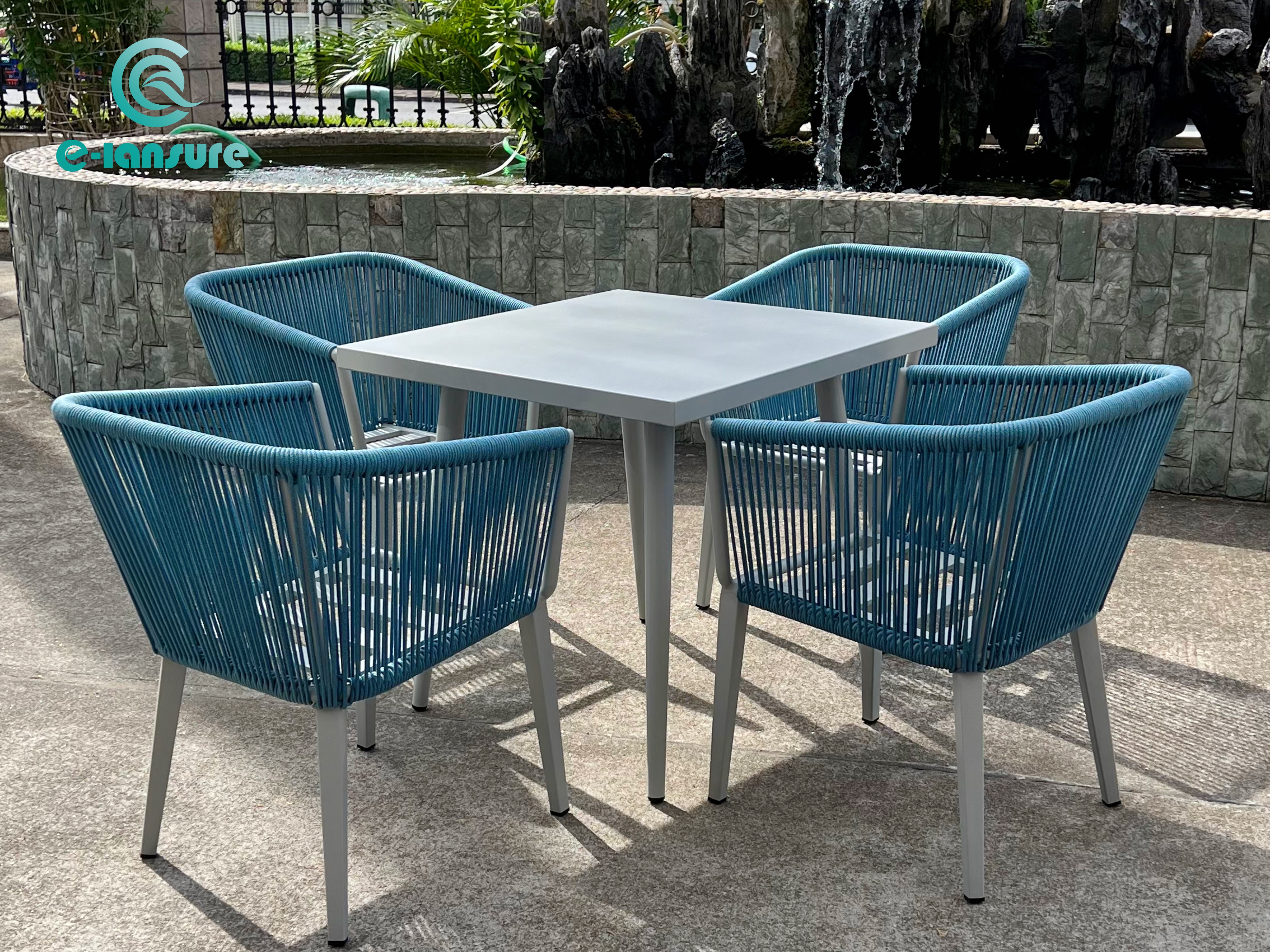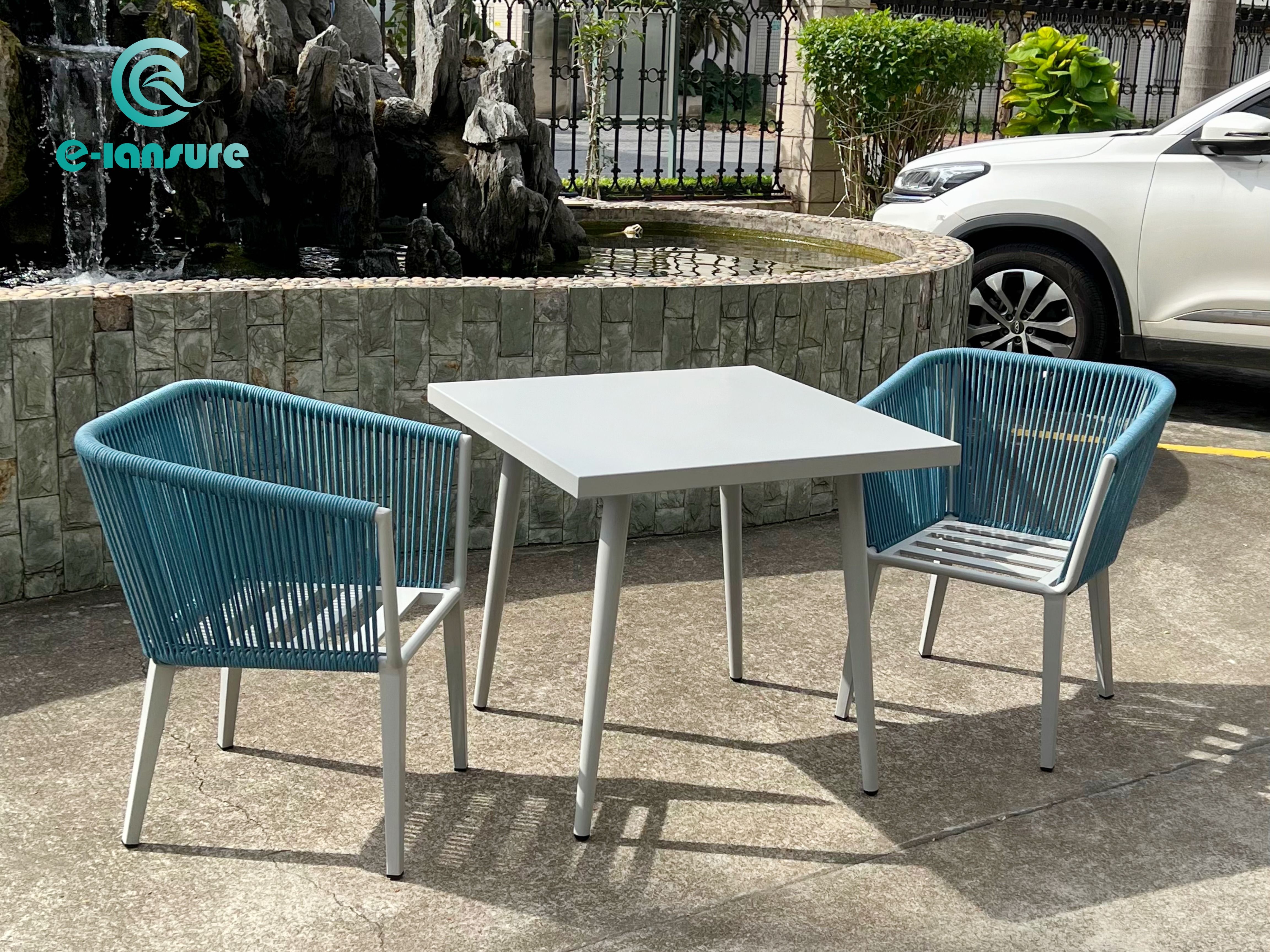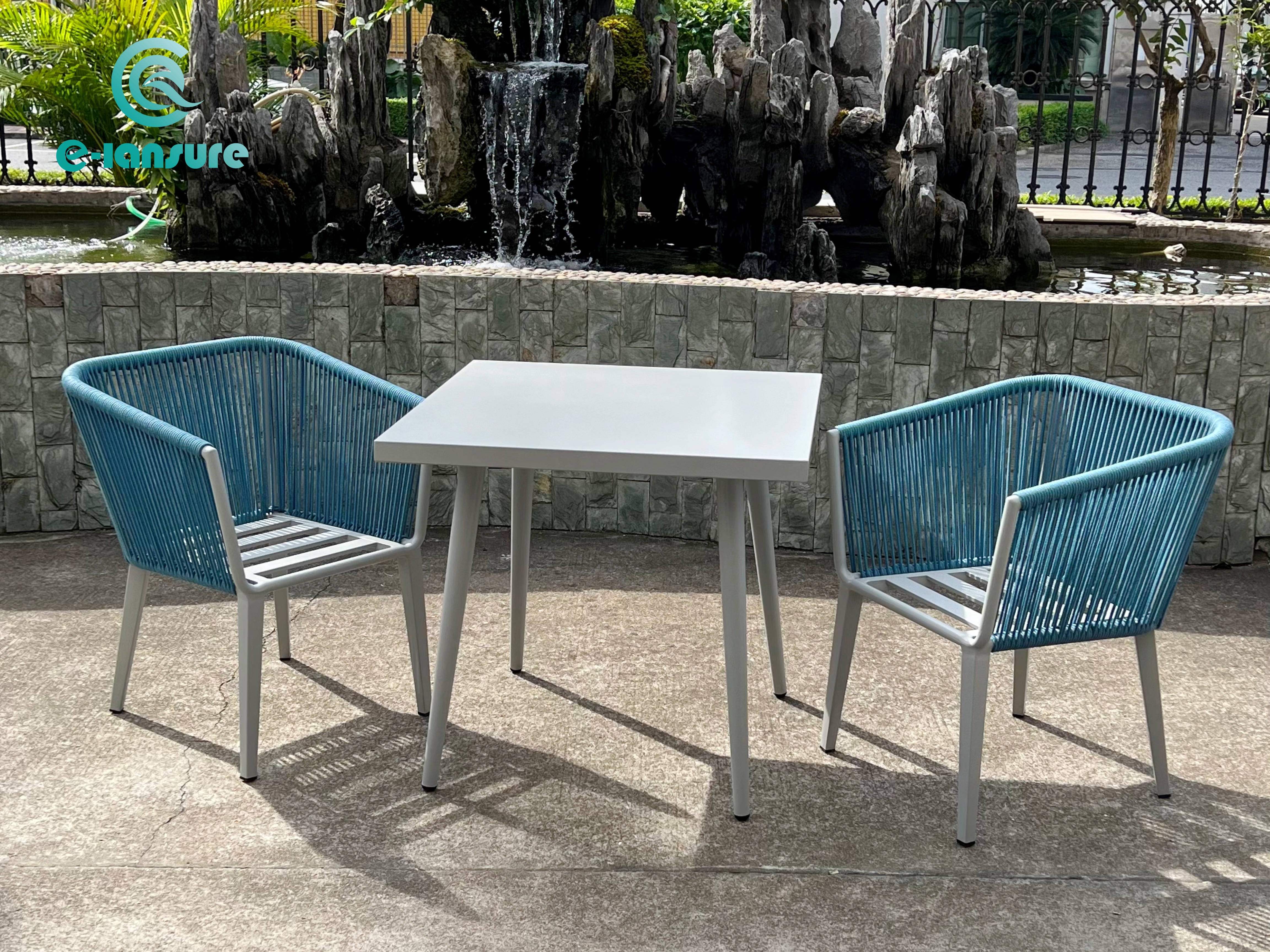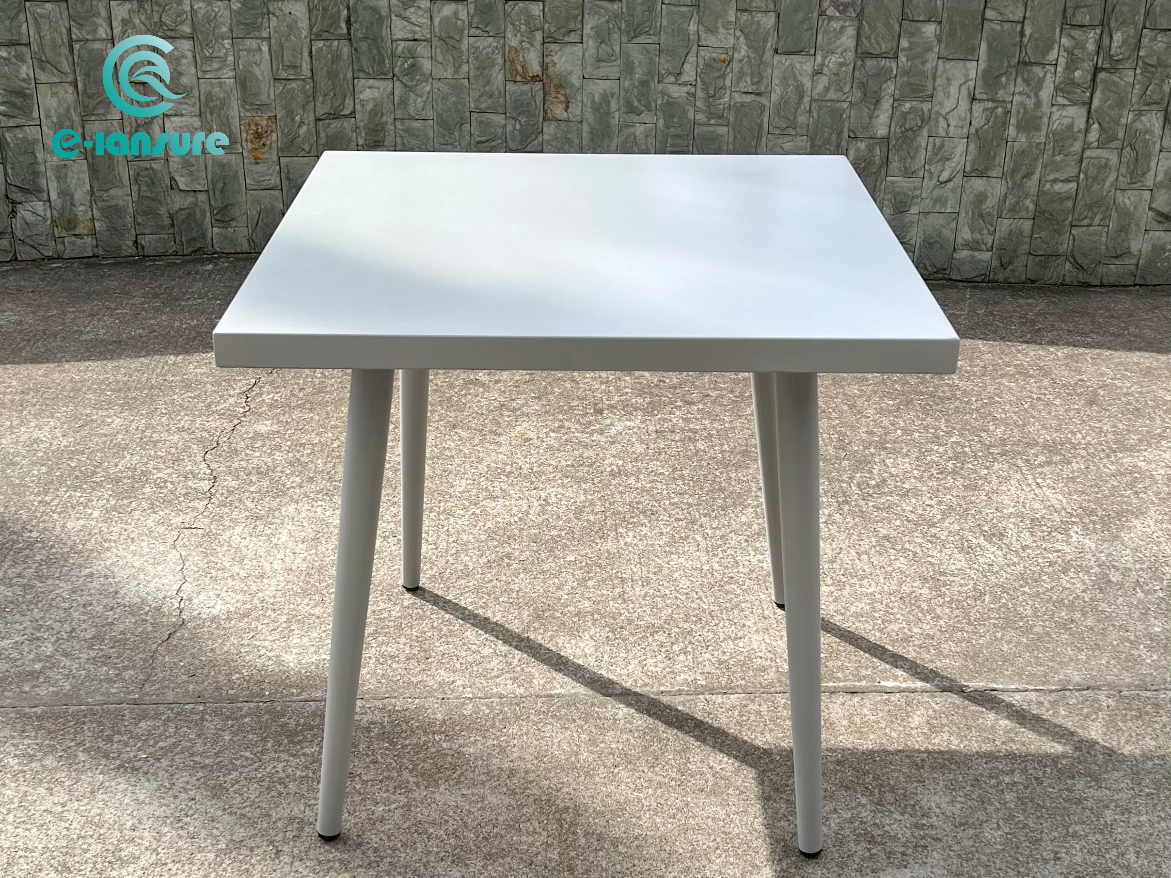 আমাদের আধুনিক আউটডোর রেস্তোরাঁর আসবাবপত্র অ্যালুমিনিয়াম স্কয়ার ডাইনিং টেবিলের সাথে আরামদায়কভাবে চার ব্যক্তিকে বসার জন্য ডিজাইন করা হয়েছে। এই মসৃণ এবং সমসাময়িক টেবিলটি বাইরের খাবারের অভিজ্ঞতার জন্য উপযুক্ত, তা রেস্তোরাঁর সেটিং বা ব্যক্তিগত বাগানে হোক না কেন।