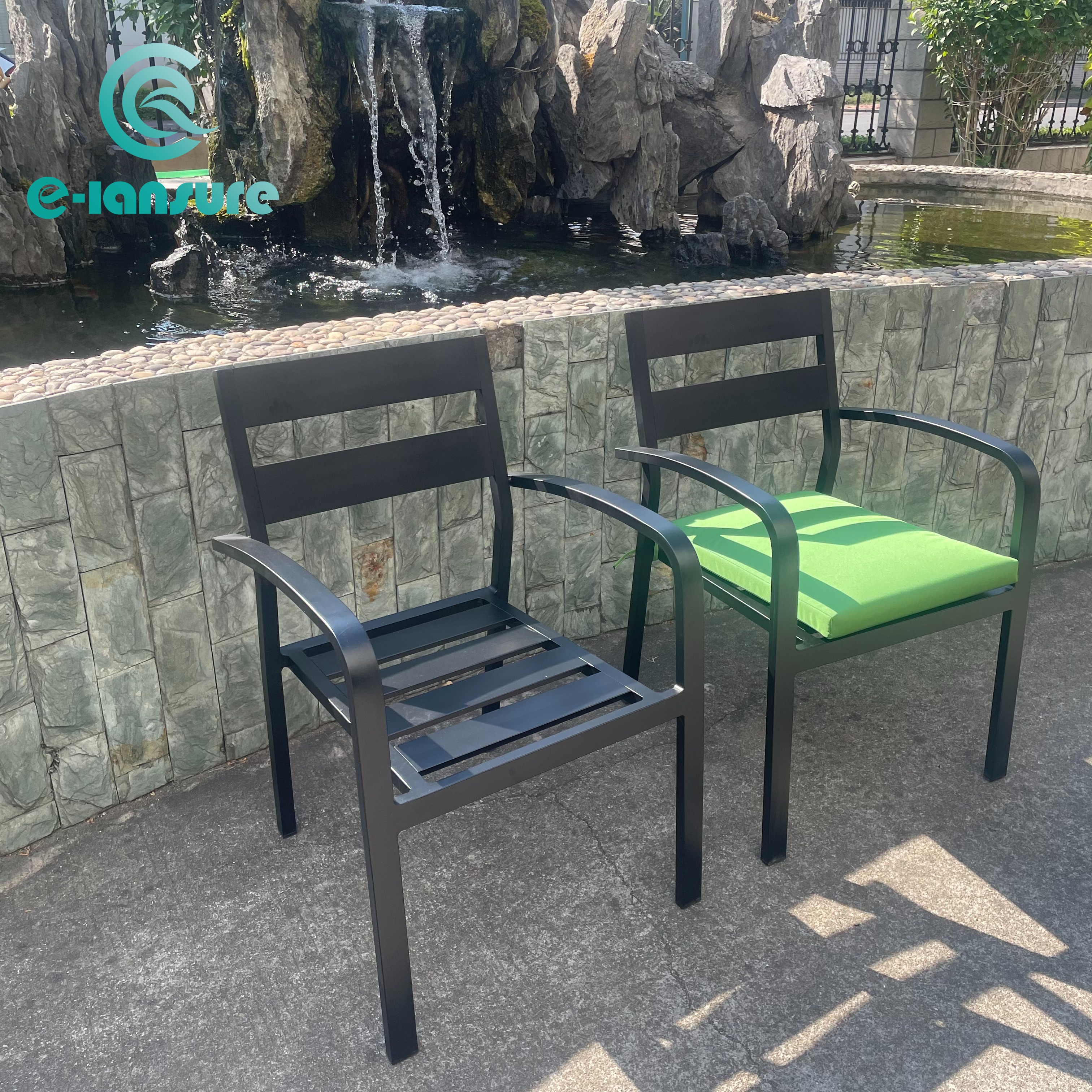 Η μαύρη καρέκλα τραπεζαρίας έχει σχεδιαστεί για άνεση και υποστήριξη, με κάθισμα και πλάτη με περίγραμμα που προάγουν τη χαλάρωση κατά τη διάρκεια εκτεταμένων γευστικών εμπειριών. Το ασορτί τραπέζι προσφέρει άφθονο χώρο στους επισκέπτες για να απολαύσουν τα γεύματά τους, ενώ ο κομψός σχεδιασμός προσθέτει μια πινελιά κομψότητας στην υπαίθρια τραπεζαρία σας.