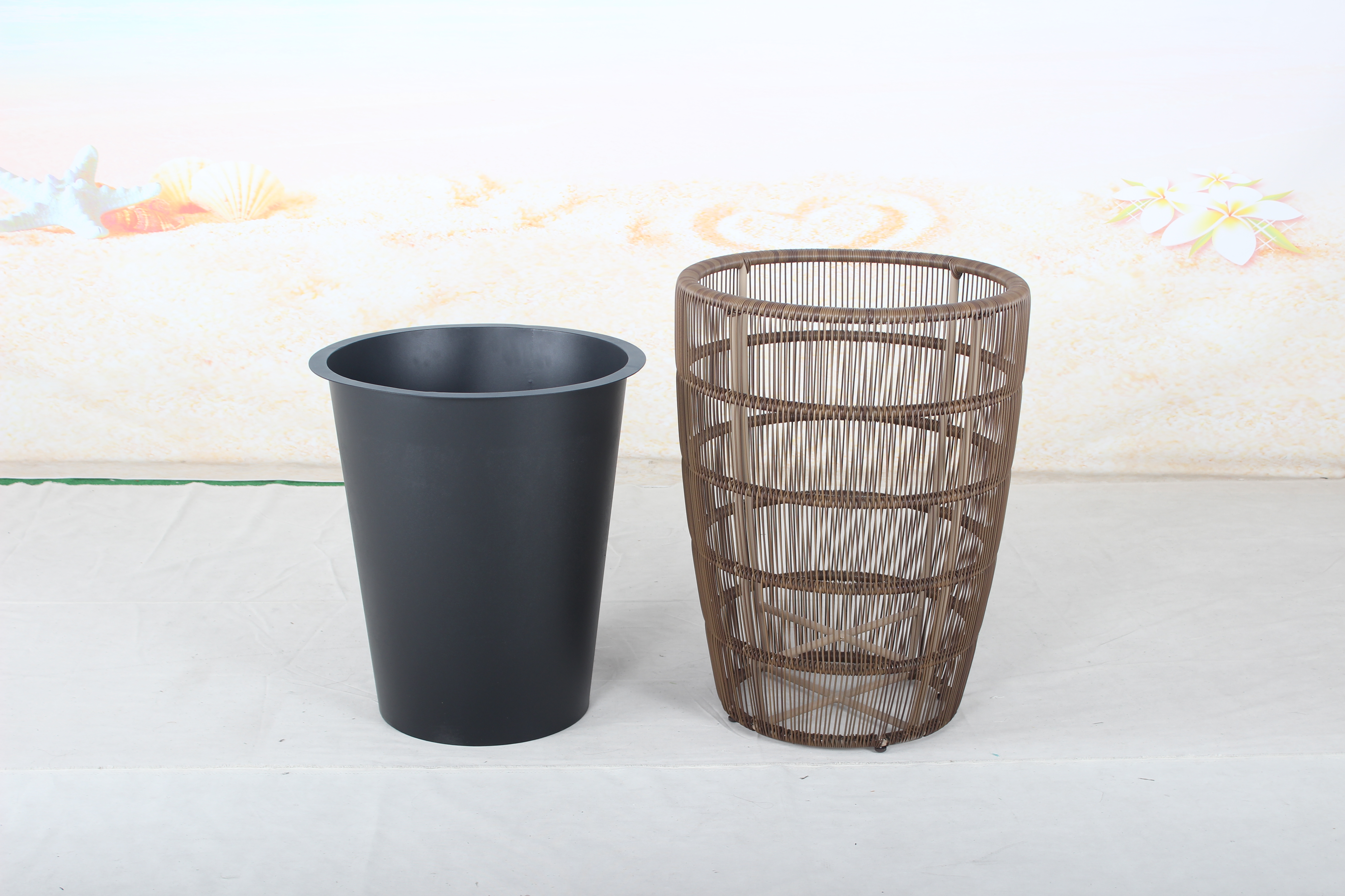 4. **Coimeádán Istigh**: Tagann an pota bláthanna le coimeádán istigh. Is pota níos lú é seo a luíonn taobh istigh den phota fite RatánComment seachtrach. Coinníonn an coimeádán istigh an ithir agus an gléasra, agus é á chosaint ó theagmháil dhíreach leis an ábhar seachtrach. Déanann sé níos éasca freisin an ithir a athrú nó an gléasra a bhogadh gan cur isteach ar an bpota maisiúil seachtrach.