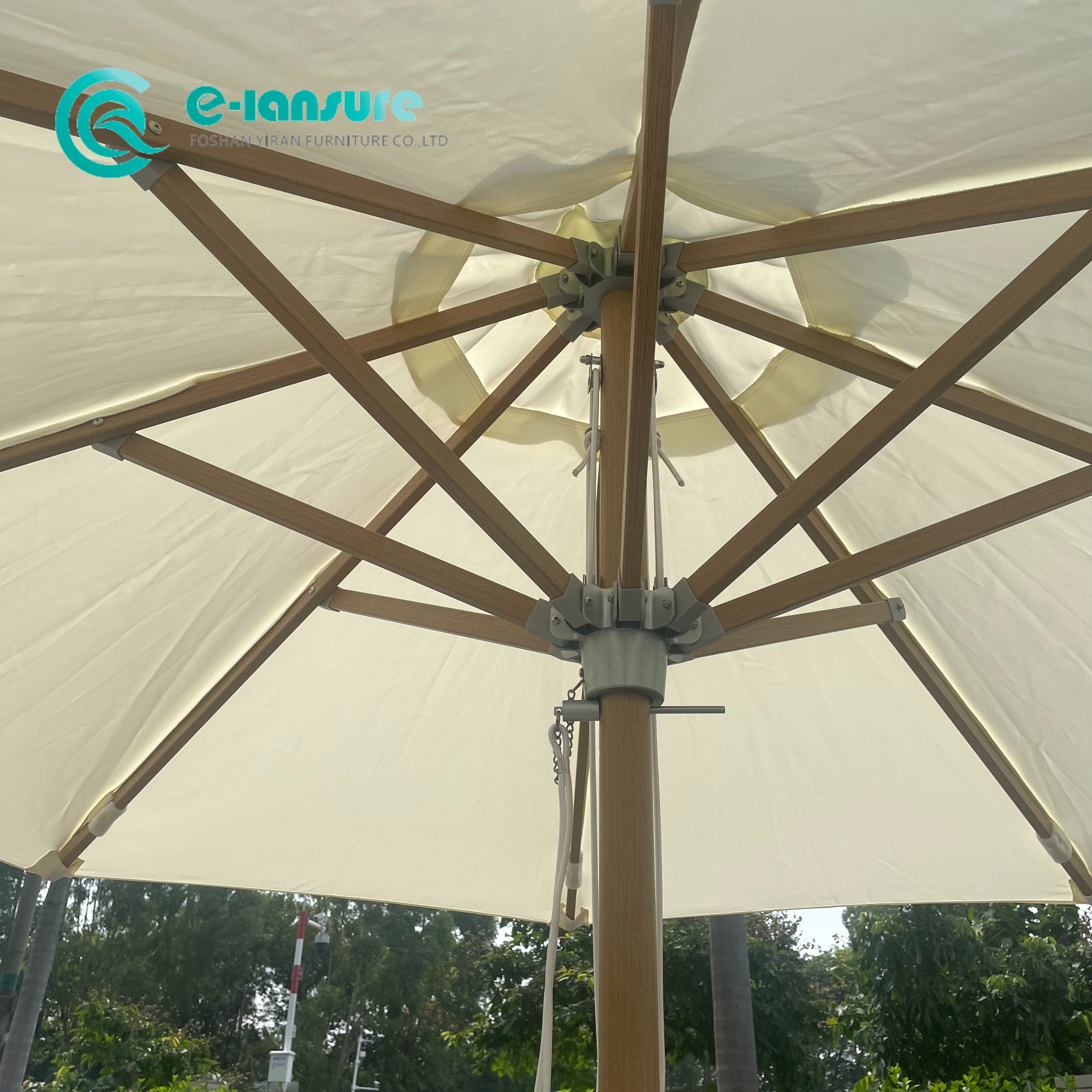 Nalazite se ovdje: Dom » Proizvodi » Vanjski kišobran » Vanjski kišobran, aluminijski okvir s drvenom završnom obradom, suncobran, vodootporna tkanina, okrugli suncobran za hotelsku plažu