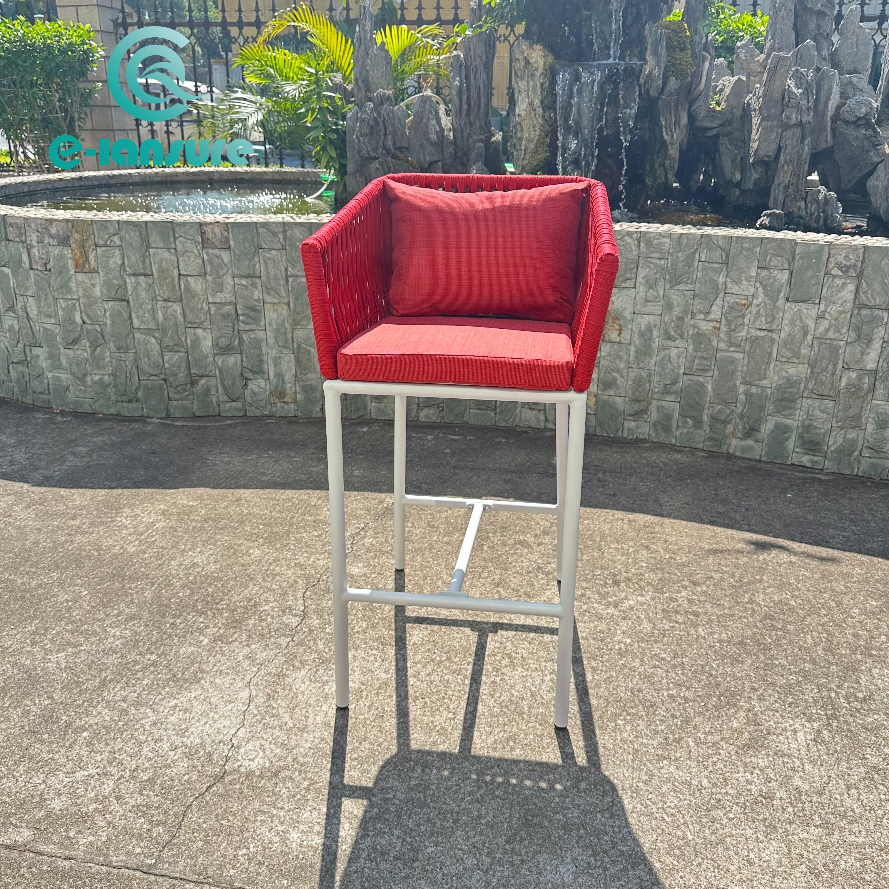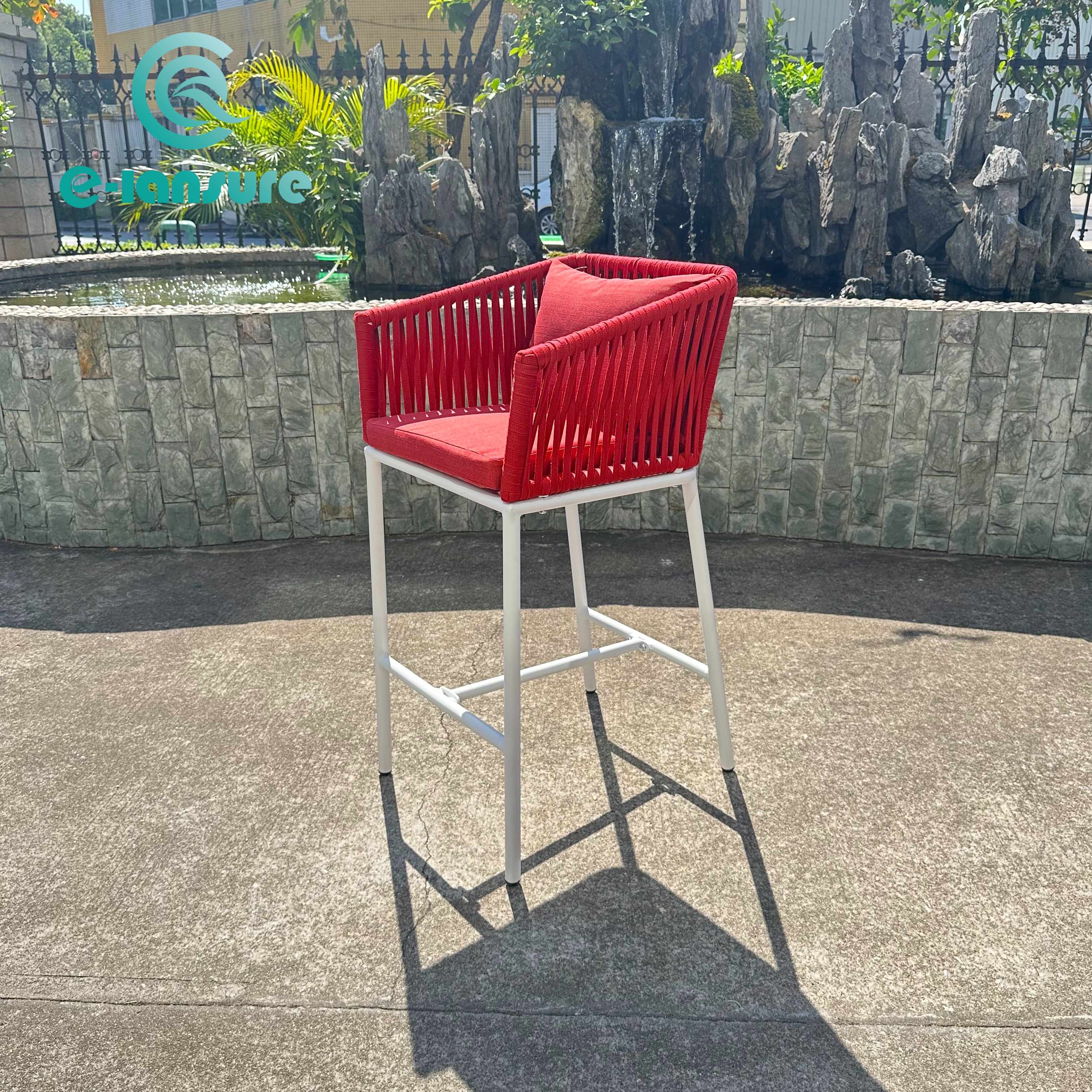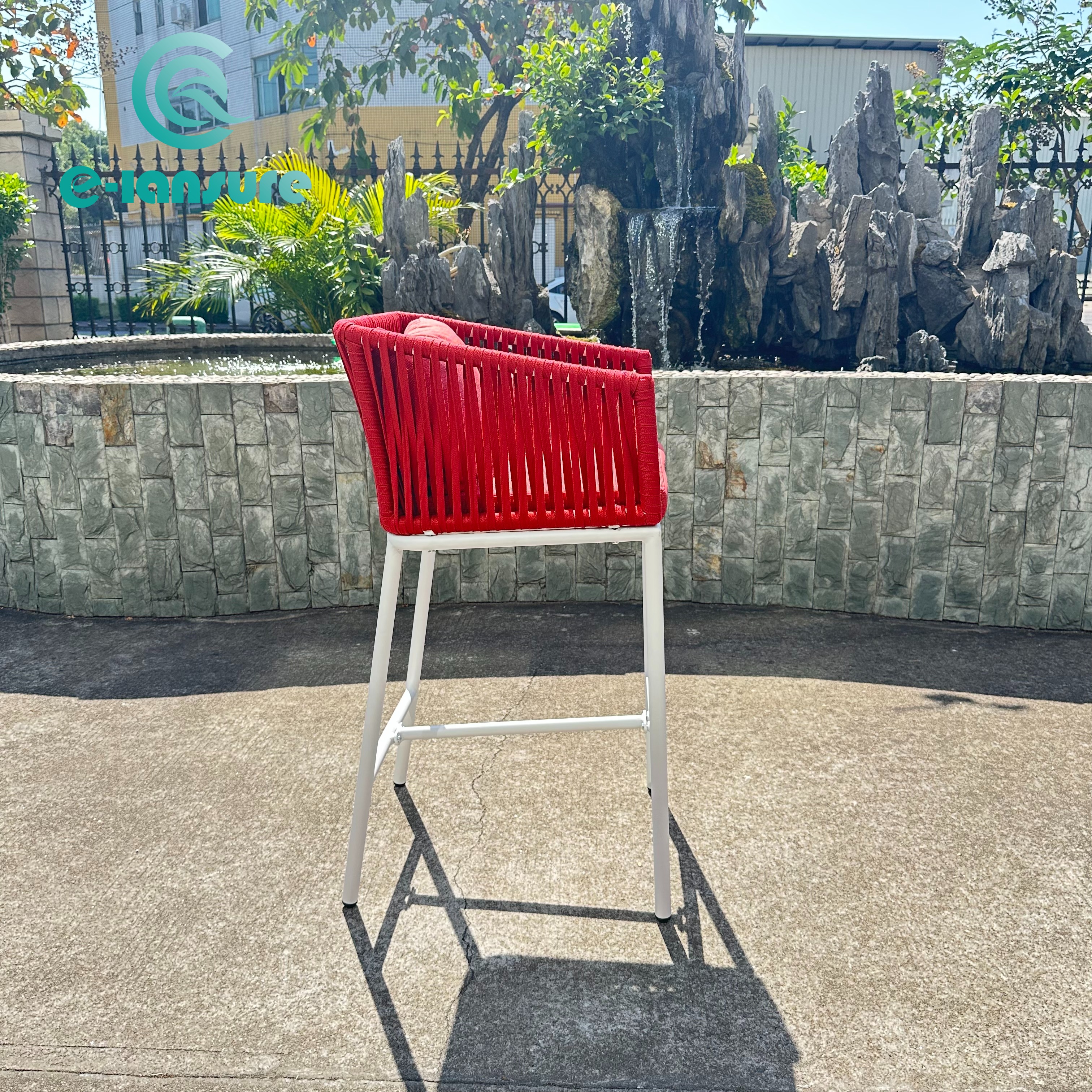 Հյուսված պարանի վառ կարմիր գույնը գունային երանգ է հաղորդում ձեր բացօթյա դեկորին՝ դարձնելով համարձակ հայտարարություն և ընդլայնելով ձեր տարածքի ընդհանուր գեղագիտությունը: Բարերի աթոռը ոչ միայն տեսողականորեն գրավիչ է, այլև գործնական, քանի որ օգտագործվող նյութերը հեշտ են մաքրվում և պահպանվում՝ ապահովելով առանց դժվարության փորձ ինչպես անձնակազմի, այնպես էլ հաճախորդների համար: