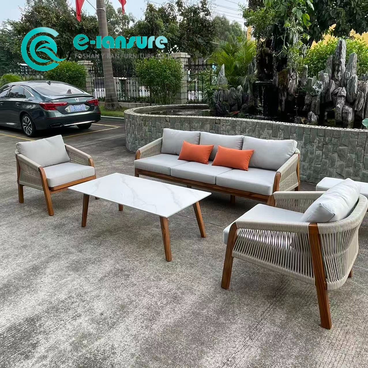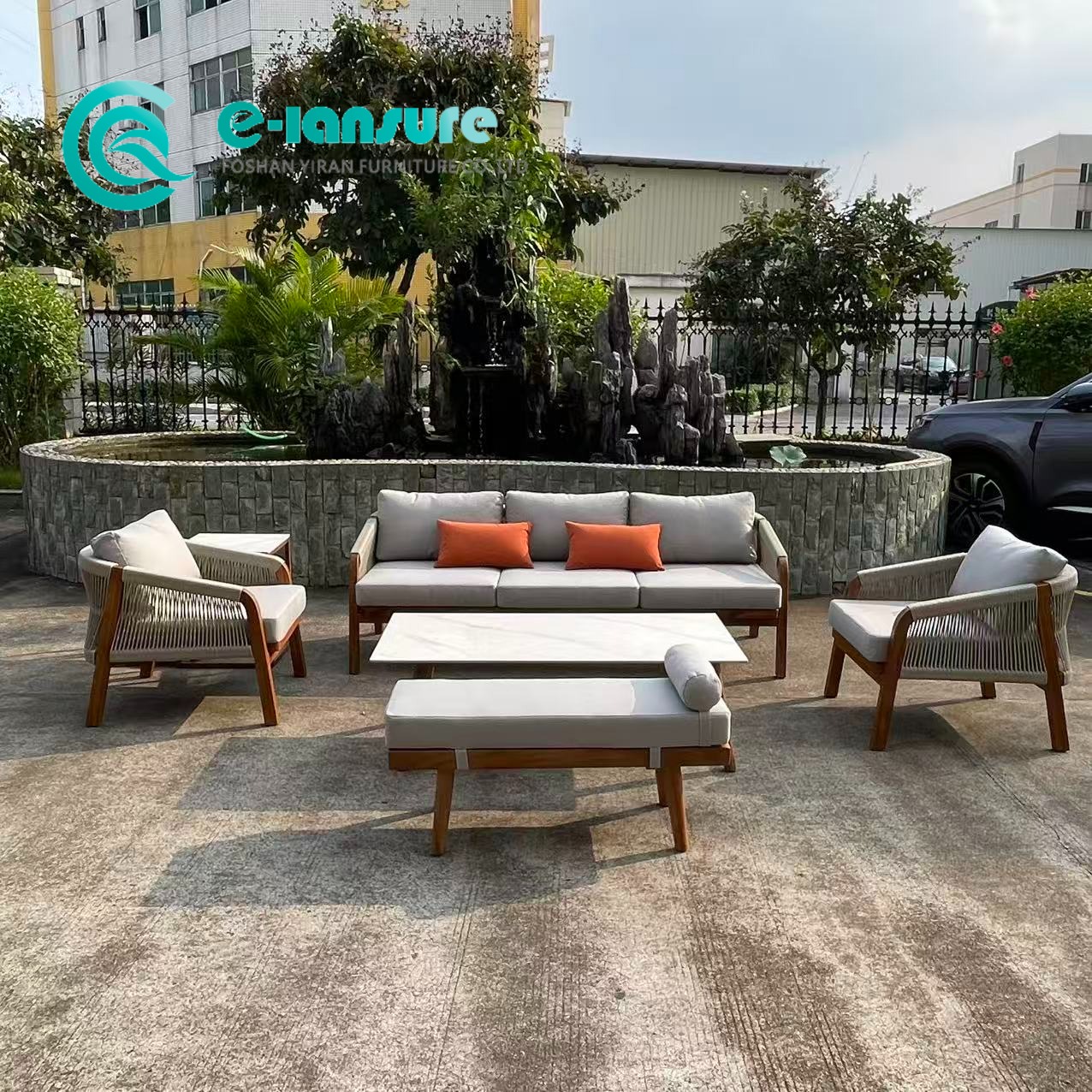 | 品質管理 | チーク材の密度は構造的寿命を検証済み。ロープ織り張力の一貫性を検査します。クッションの防水性は耐湿性テスト済み。荷重シミュレーションを通じてジョイントの完全性を確認。すべてのピースにわたって仕上げの均一性を評価。さまざまな屋外表面で検証された全体的な安定性 |
