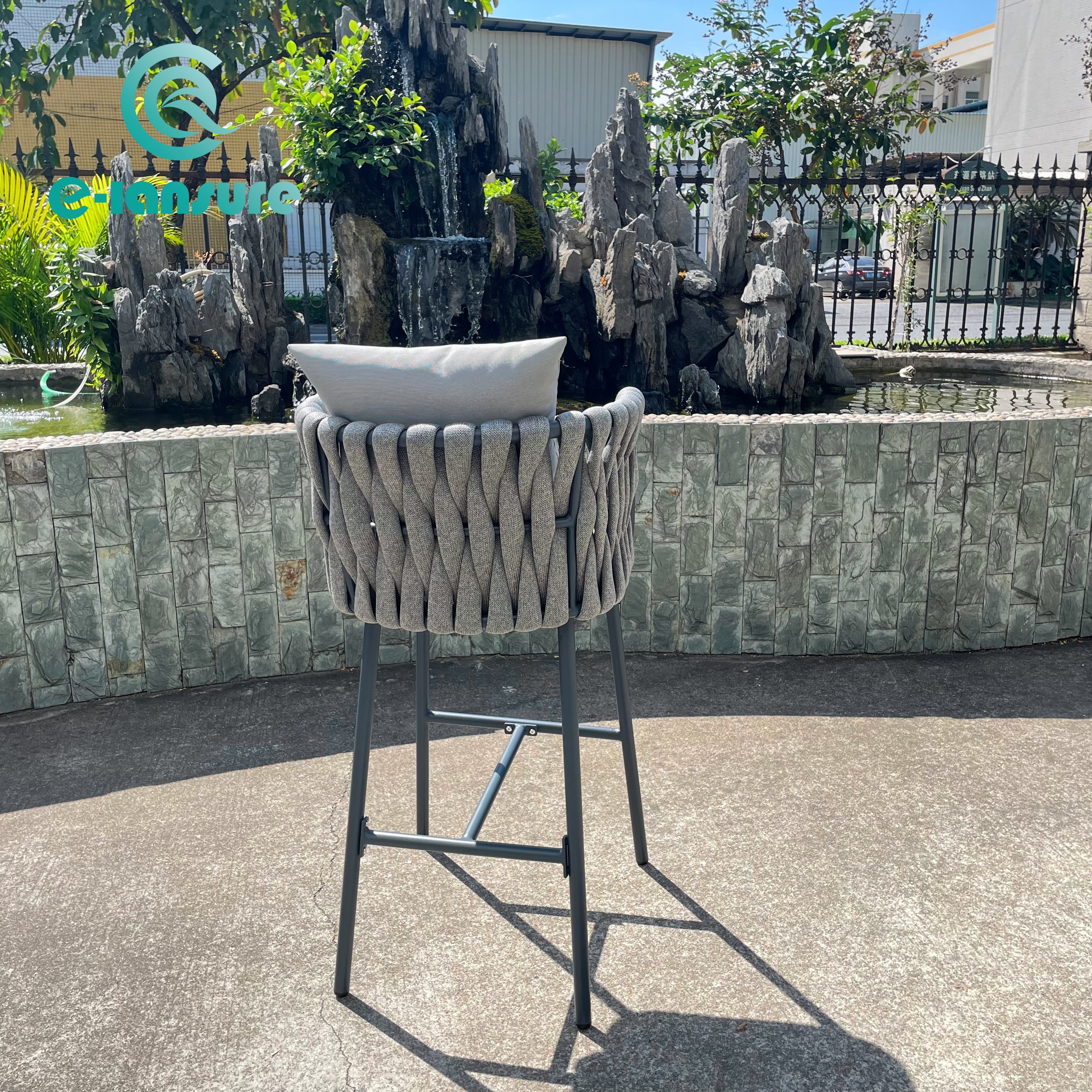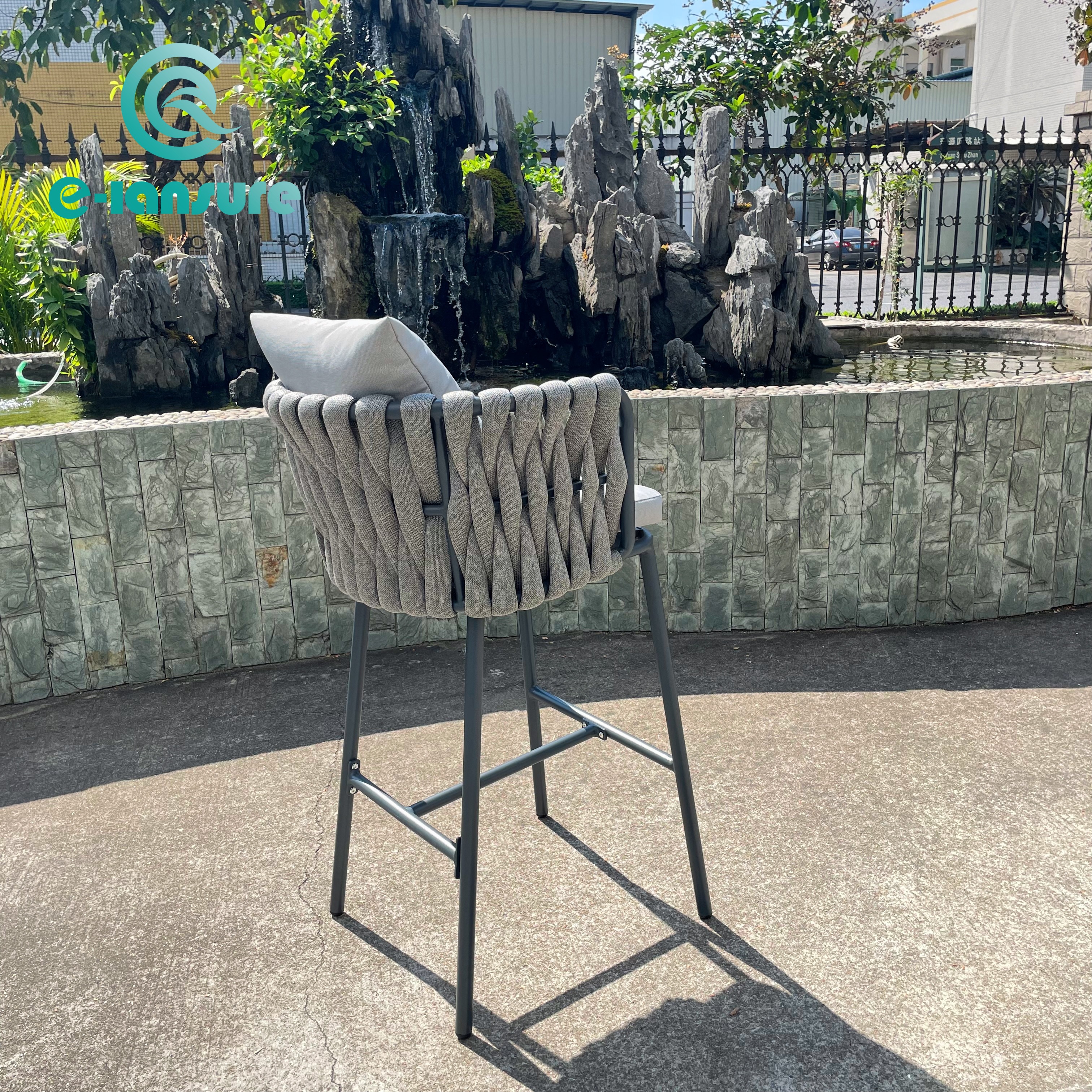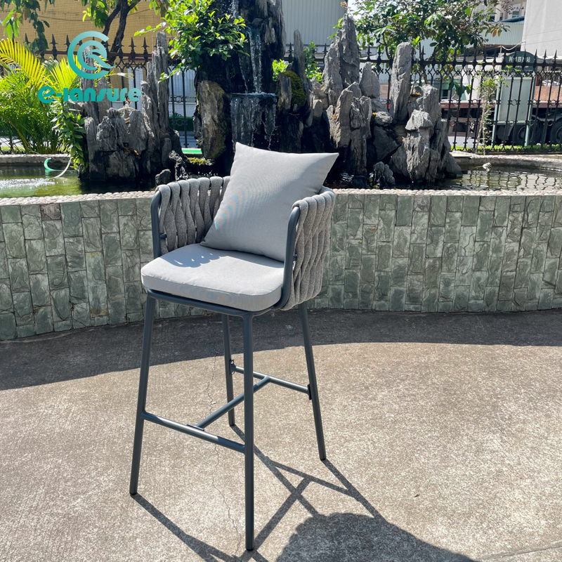 ເຟີນິເຈີບາກາງແຈ້ງຂອງພວກເຮົາຖືກອອກແບບດ້ວຍຄວາມລະມັດລະວັງໃນລາຍລະອຽດ, ຮັບປະກັນທັງຄວາມທົນທານແລະຄວາມງາມ. ກອບອາລູມິນຽມສະຫນອງພື້ນຖານທີ່ເຂັ້ມແຂງທີ່ທົນທານຕໍ່ການທົດສອບເວລາແລະສະພາບອາກາດ, ເຮັດໃຫ້ມັນສົມບູນແບບສໍາລັບພື້ນທີ່ກາງແຈ້ງຂອງທ່ານ. ການອອກແບບກັບຄືນໄປບ່ອນສູງສະຫນອງການສະຫນັບສະຫນູນທີ່ດີເລີດ, ໃນຂະນະທີ່ການທໍເຊືອກສີຂີ້ເຖົ່າເພີ່ມການສໍາພັດຂອງຄວາມສະຫງ່າງາມແລະການດຶງດູດສາຍຕາທີ່ເປັນເອກະລັກ. ການປະສົມປະສານຂອງວັດສະດຸແລະການອອກແບບນີ້ຮັບປະກັນວ່າເກົ້າອີ້ Rope Bar ຂອງທ່ານບໍ່ພຽງແຕ່ເບິ່ງທີ່ສວຍງາມເທົ່ານັ້ນແຕ່ຍັງມີຄວາມຮູ້ສຶກສະດວກສະບາຍຢ່າງບໍ່ຫນ້າເຊື່ອ.