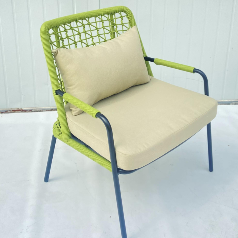 - การผสมผสานระหว่างการทอเชือกและเบาะรองนั่งทำให้เก้าอี้เลานจ์ให้ประสบการณ์การนั่งที่สบาย เหมาะสำหรับการพักผ่อนและพักผ่อน