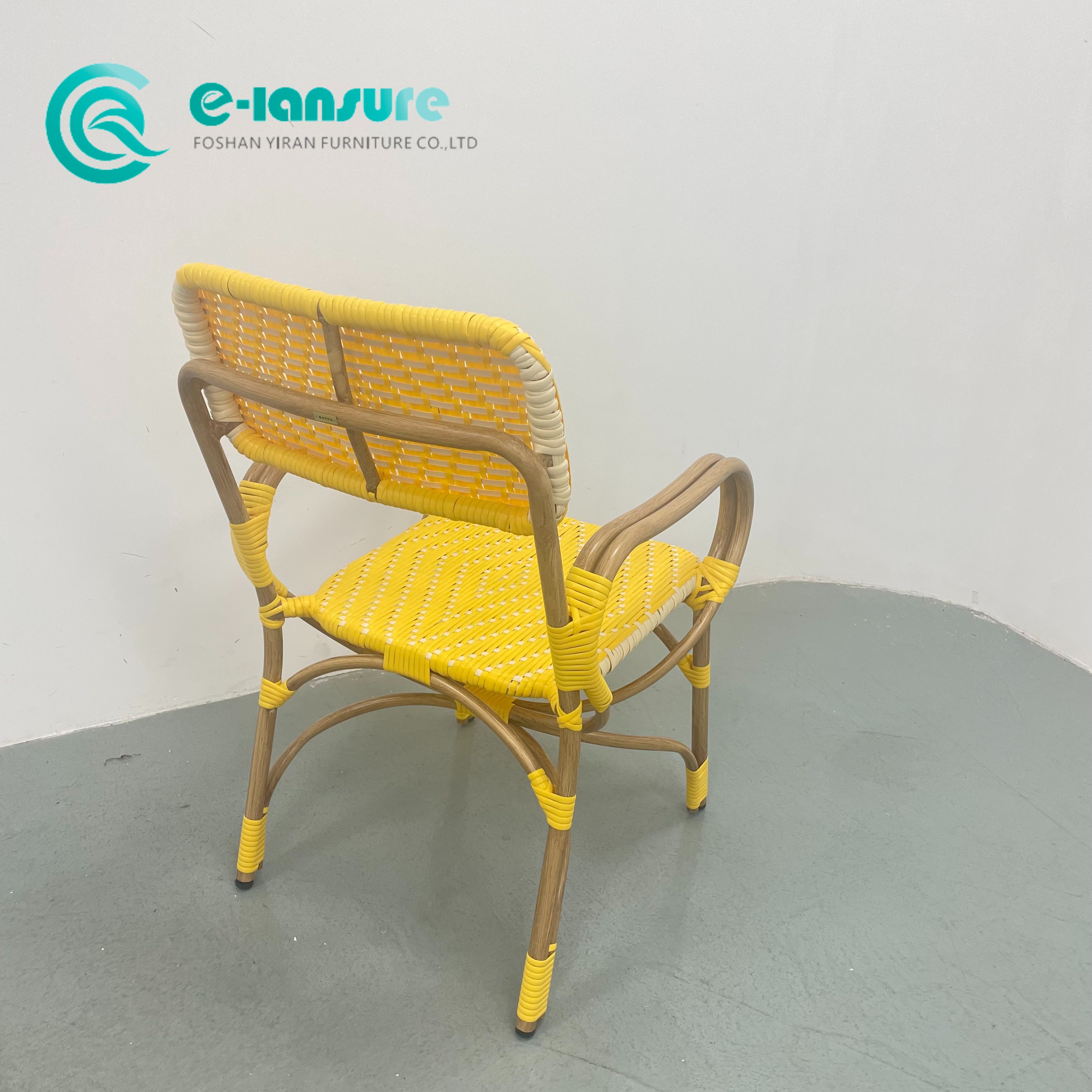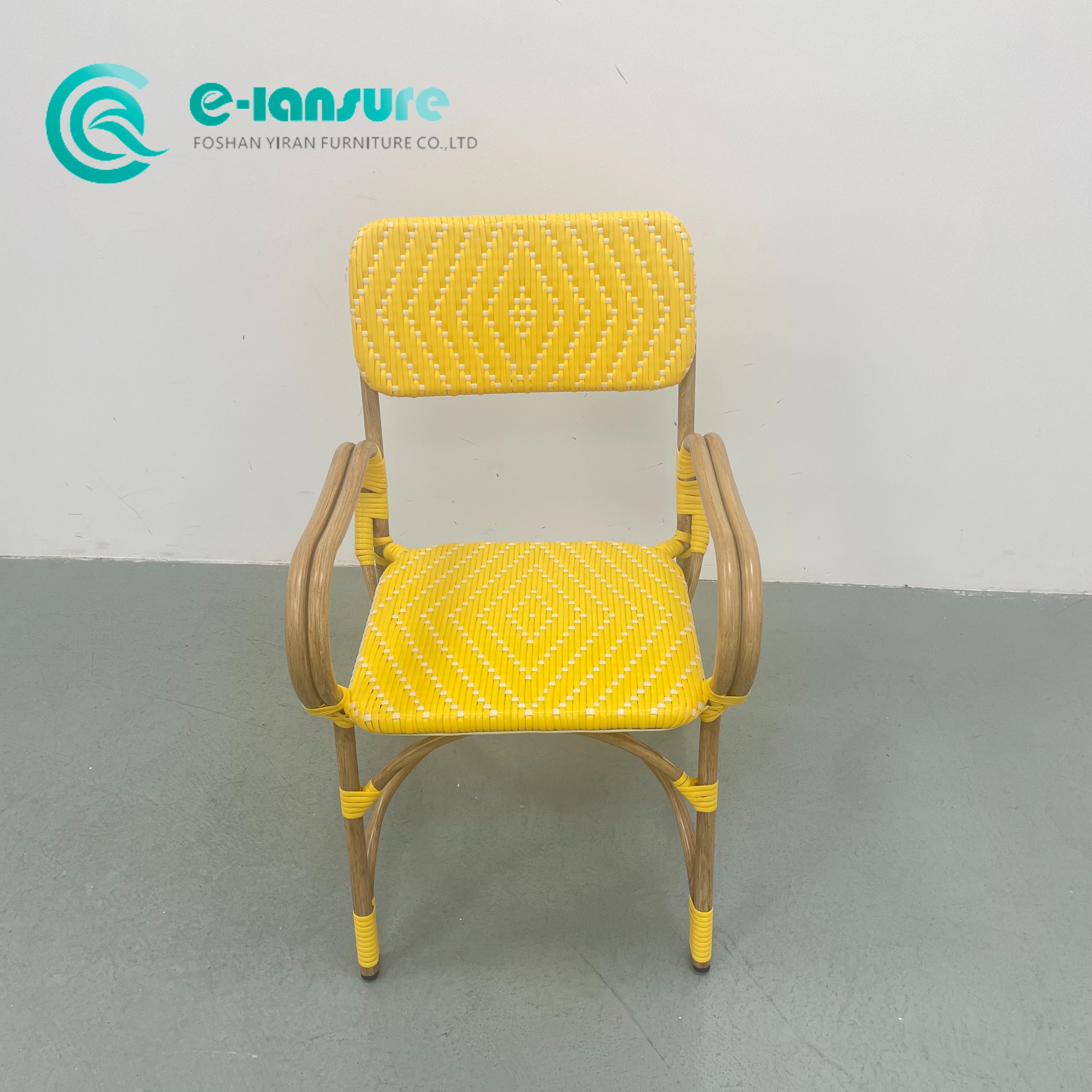| Phong cách | Ghế ăn có tay vịn cao đan mây PE màu vàng tươi |